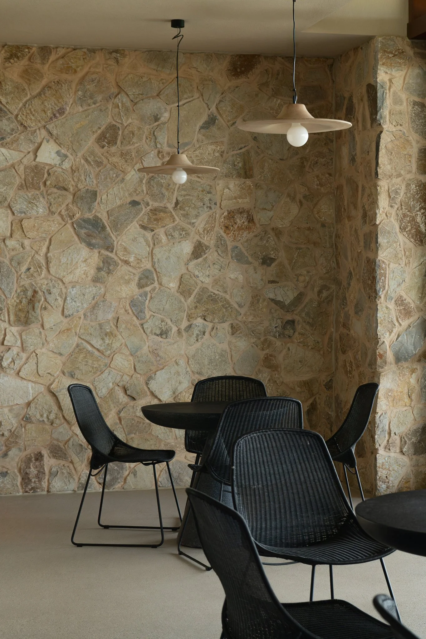 As the first point of welcome, the reception area sets the tone for the entire South Australian ceramicist Stephanie James-Manttan are a striking introduction to the resort’s emphasis on craft and connection to place. Made using wheel-throwing and hand-carving techniques, the lights offer a unique texture, casting a gentle glow that adds warmth and depth to the arrival space.